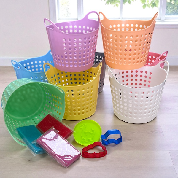 Canasta organizadora souvenirMedidas: 11cm de alto por 10cm de diametro -aproximado-Colores SURTIDOS PASTEL
