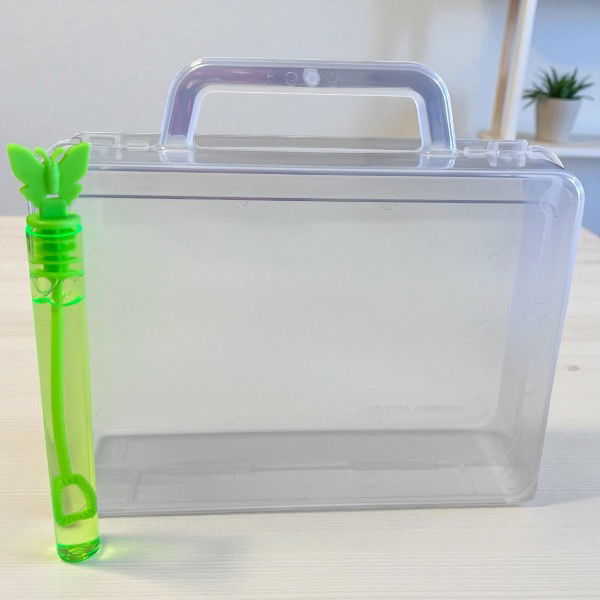 Valija plástica vacia medidas: 14x12,5x4.5cm -manija incluida-